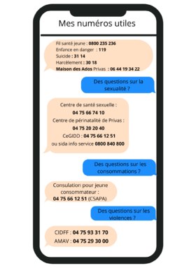 Format coque de téléphone. Tu peux avoir toujours sur toi les numéros utiles , pour répondre à tes questions
